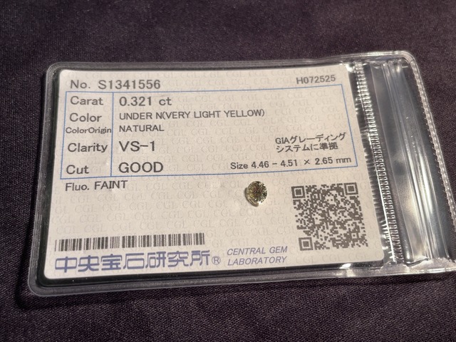 ナチュラルカラーダイヤ 0.321 ct Very Light Yellow (under N) VS-1 GOOD FAINT ( CGL艦)