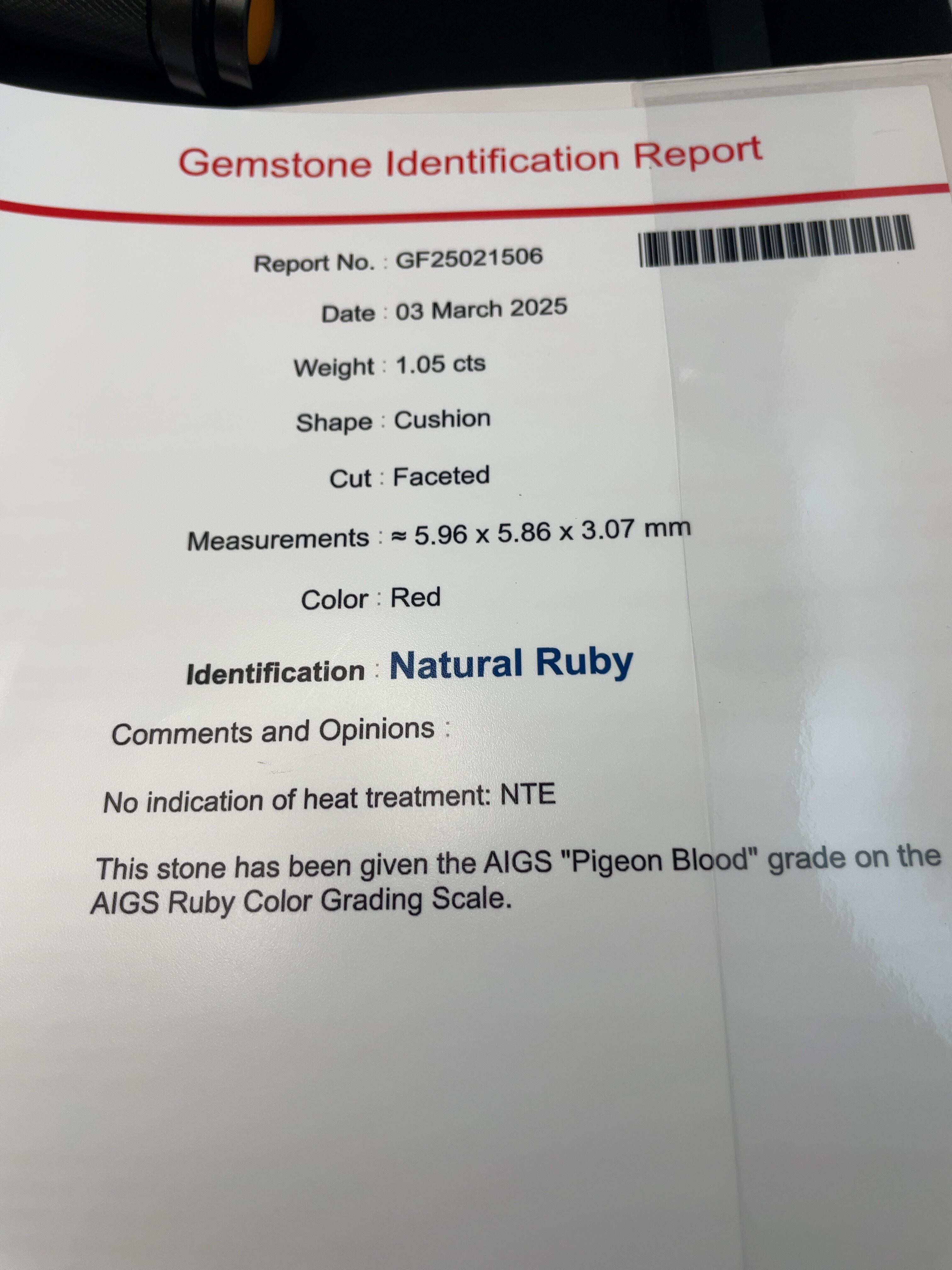 ルビー ルース ピジョンブラッド 非加熱 AIGS鑑
